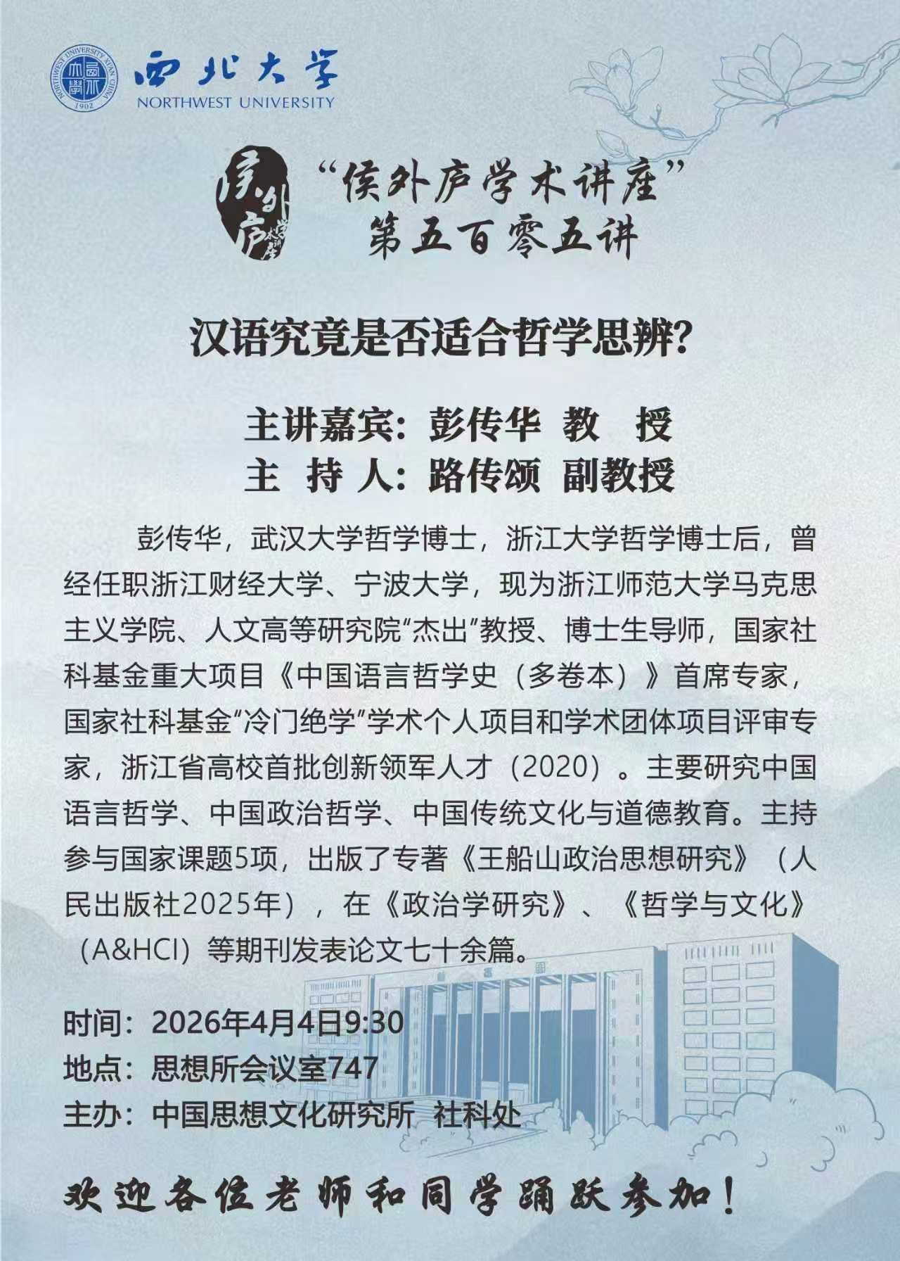 “侯外庐学术讲座” 第五百零五讲:汉语究竟是否适合哲学思辨?