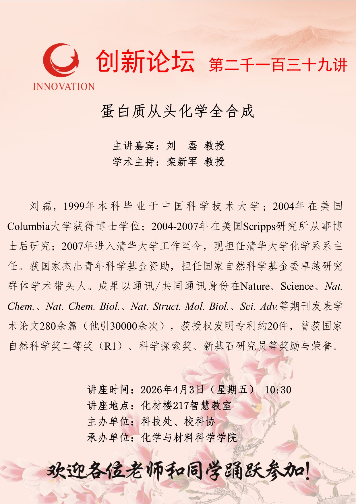 西北大学创新论坛第二千一百三十九讲:蛋白质从头化学全合成