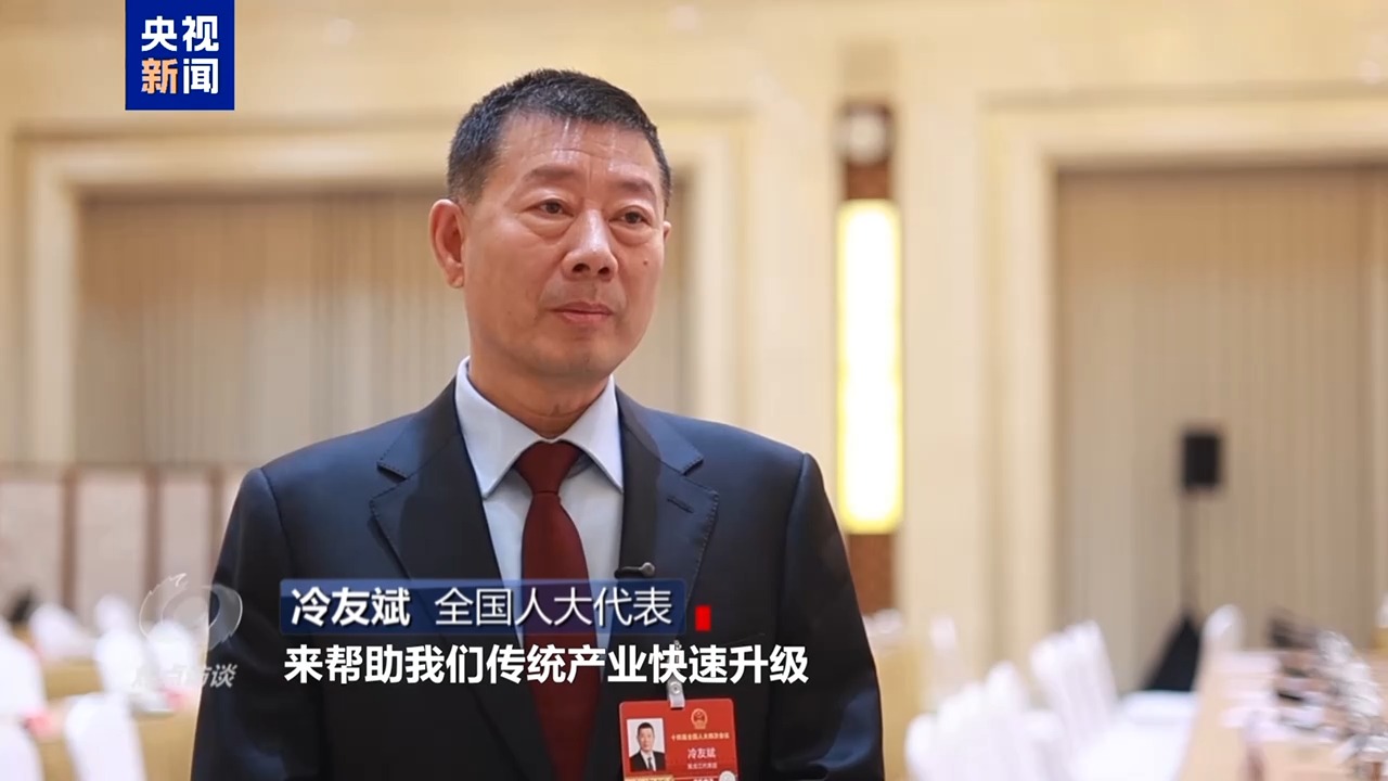 全国人大代表 冷友斌:我觉得实体经济更应该跟时代同步,用科技、人工智能来帮助传统产业快速升级。技术要融进去才能把生产流程、质量,控制在流程过程中,而不是成品再去检测,让企业更有效率,让成本更低。一定是用科技来推动产业发展,推动行业快速跟市场接轨、跟国际接轨,把产业链做得更强、更有韧性,以实业报国,实干兴邦。