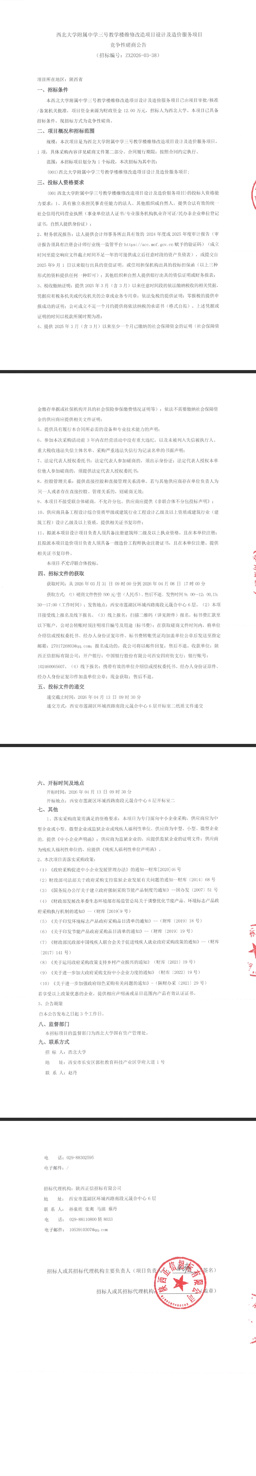 西北大学附属中学三号教学楼维修改造项目设计及造价服务项目竞争性磋商公告