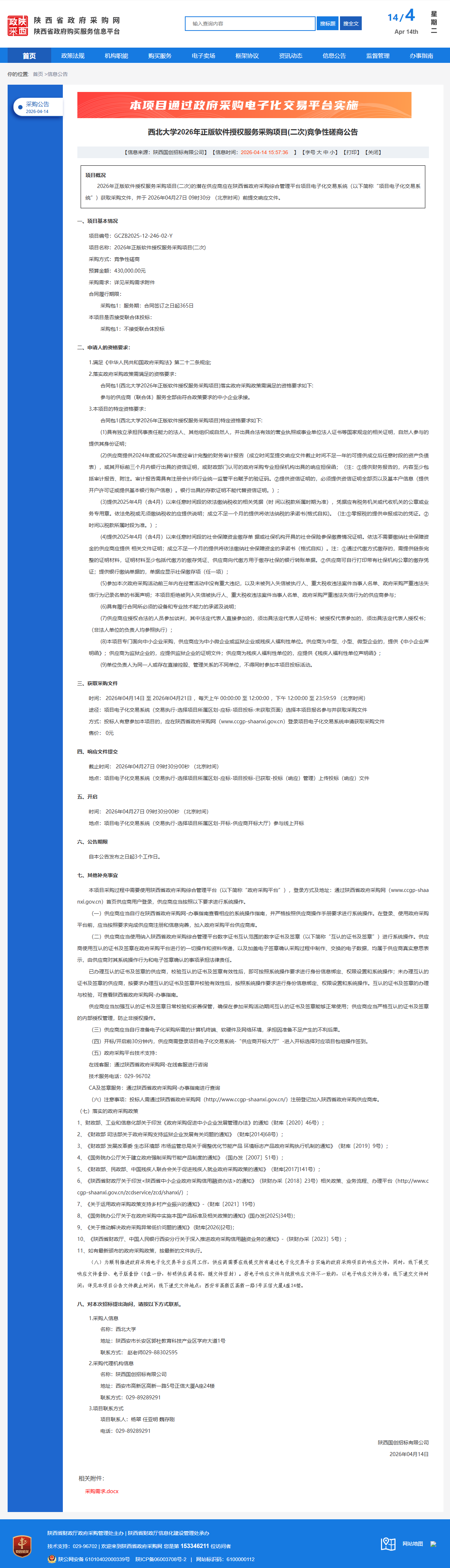 西北大学2026年正版软件授权服务采购项目(二次)竞争性磋商公告