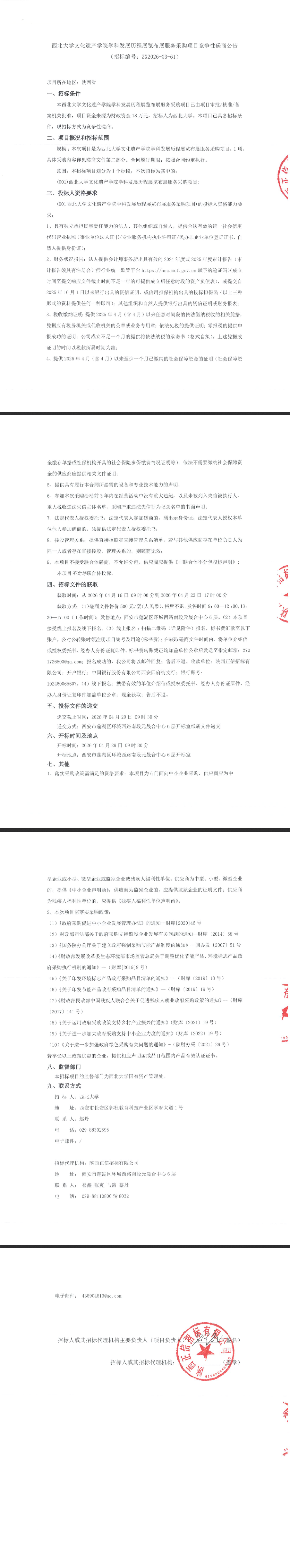 西北大学文化遗产学院学科发展历程展览布展服务采购项目竞争性磋商公告