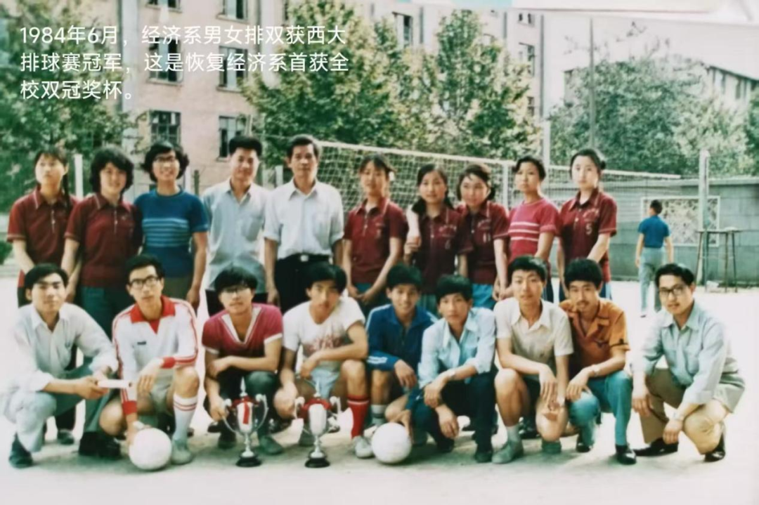 1984年6月经济系男女排双获西大排球赛冠军合影
