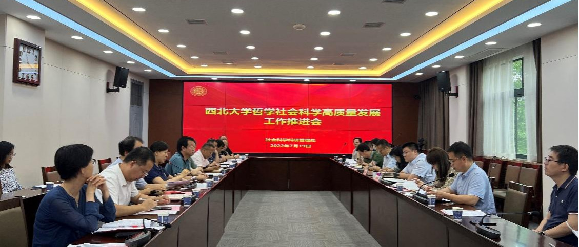 7月19日下午,学校在长安校区召开首场“哲学社会科学高质量发展工作座谈会”,就西北大学哲学社会科学高质量发展重点工作进行深入座谈。校党委副书记张清,校党委常委、副校长吴振磊出席会议,社科处、高层次人才项目办公室、发展规划与学科建设处及校内各文科学院主要负责人参加会议。会上,社科处负责人首先传达了《国家“十四五”时期哲学社会科学发展规划》《面向2035高校哲学社会科学高质量发展行动计划》文件精神,就《西...