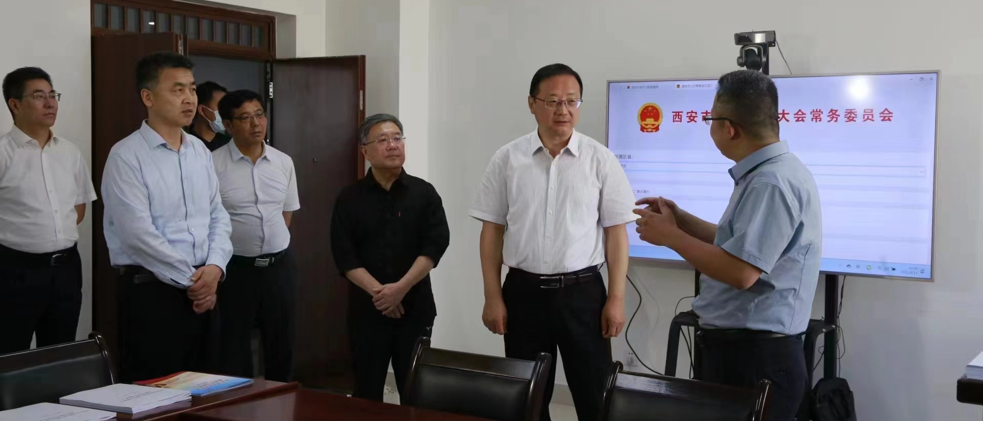 6月13日上午,西安市人大常委会韩松主任一行到我校调研基层立法联系点工作。市人大常委会秘书长、办公厅主任韩强,研究室主任王晓萍,法制委副主任委员、法工委副主任王海安,长安区人大常委会党组书记、主任刘文涛和党组成员、副主任葛莹陪同调研。我校校长郭立宏,法学院负责人、部分专家出席座谈会。调研组一行考察了基层立法联系点的办公场所,详细了解我校基层在开展基层立法联络联系工作方面所作出的努力和探索。联系点负...