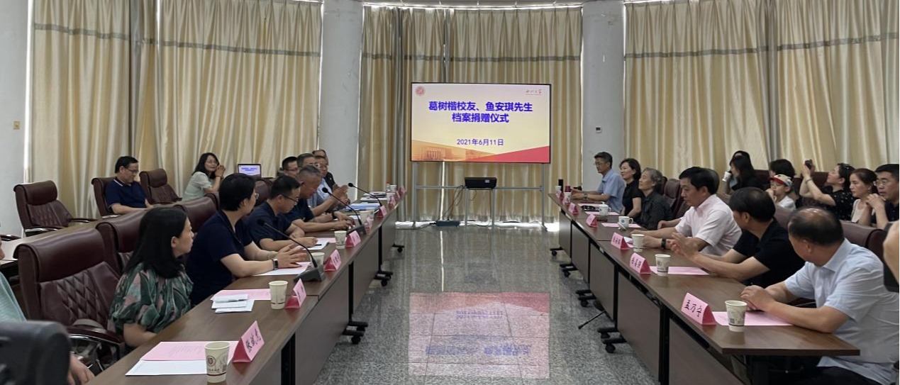 6月11日下午,我校在太白校区举行葛树楷校友、鱼安琪先生档案捐赠仪式。校党委常委、副校长王正斌,葛树楷家人、鱼安琪及亲友、党(校)办、机关党委、国内处、保卫处、历史学院、图书馆、博物馆等相关部门和院系负责人及档案馆全体人员近30人参加了档案捐赠仪式。仪式由档案馆负责人主持。葛树楷为国立西北大学文学院历史系1943级校友,其子葛世俊向学校捐赠了葛树楷使用过的书箱、笔筒、笔袋、刺绣等实物档案以及在国立西北大...