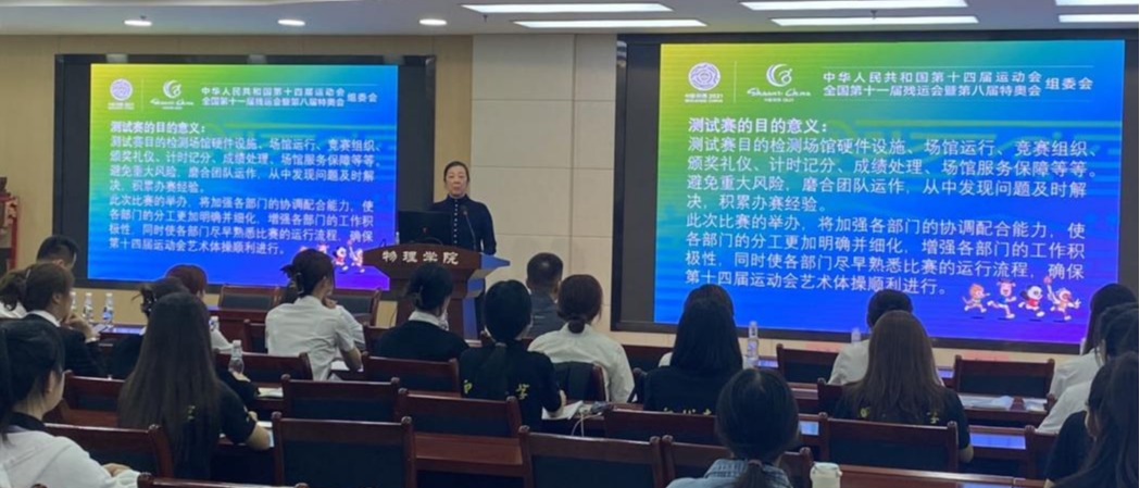 6月17日,第十四届全国运动会艺术体操项目辅助裁判员和竞赛专业志愿者培训班在我校长安校区举办。校党委常委、副校长、十四运会艺术体操项目竞赛委员会执行主任奚家米主持开班仪式。国家体育总局体操运动管理中心艺术体操部部长、十四运会艺术体操竞委会的副主任张莹,陕西省体操运动管理中心及我校相关单位负责人参加开班仪式。十四运会艺术体操项目辅助裁判员、专业志愿者约120人参加了此次培训。张莹在培训中从竞赛内容和岗...