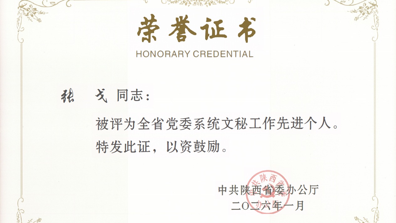 日前,《中共陕西省委办公厅关于表彰全省党委系统文秘、法规、信息和督查工作先进集体和先进个人的决定》公布,党委办公室、校长办公室张戈同志荣获“全省党委系统文秘工作先进个人”称号。该奖项5年评选一次,此次全省表彰文秘工作先进个人31人,张戈同志系全省教育系统唯一获奖个人。近年来,党委办公室、校长办公室坚持用习近平新时代中国特色社会主义思想凝心铸魂,忠诚践行“五个坚持”,始终将政治建设摆在首位,教育引导...