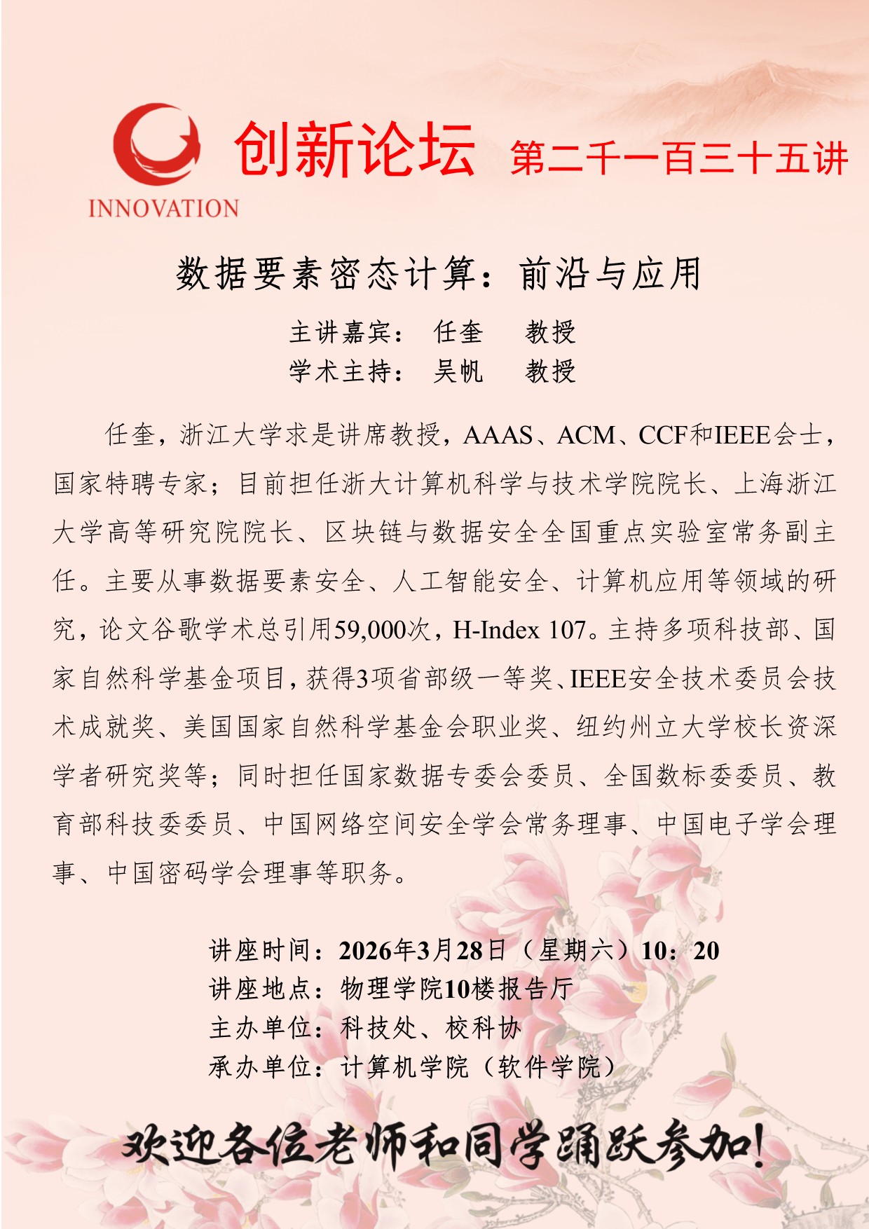 西北大学创新论坛第二千一百三十五讲:数据要素密态计算:前沿与应用