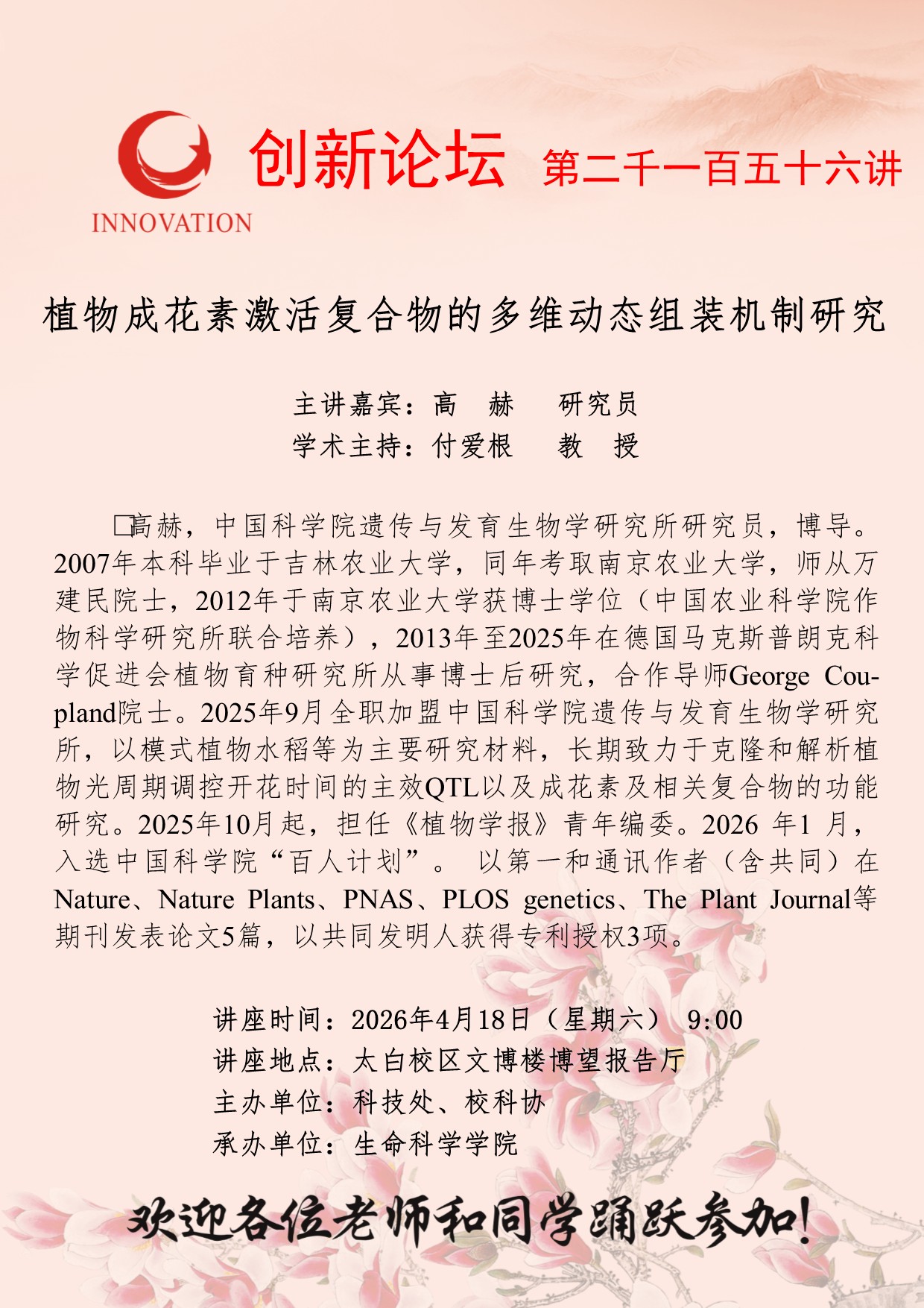 上一篇:西北大学创新论坛第二千一百五十七讲:小麦再生效率调控机制解析及应用