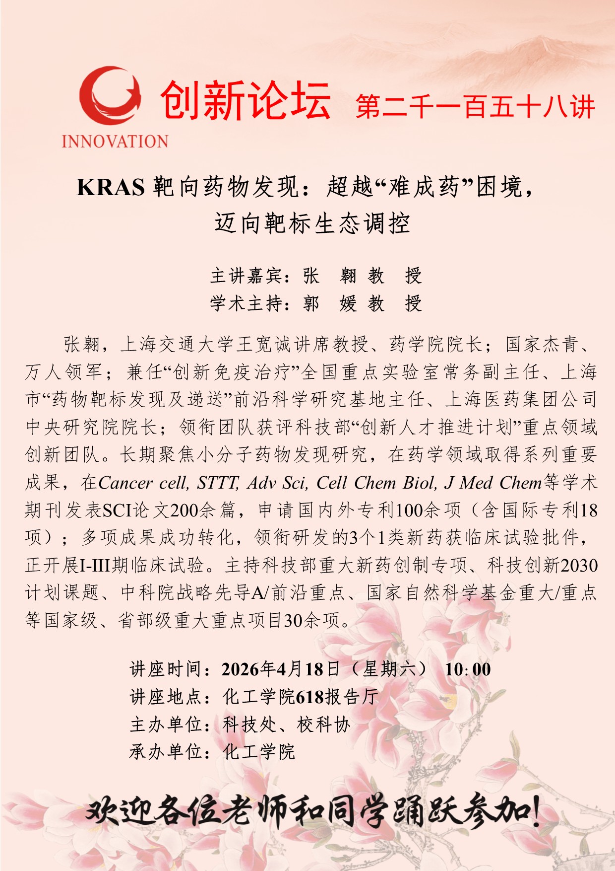 西北大学创新论坛第二千一百五十八讲:KRAS 靶向药物发现:超越“难成药”困境,迈向靶标生态调控