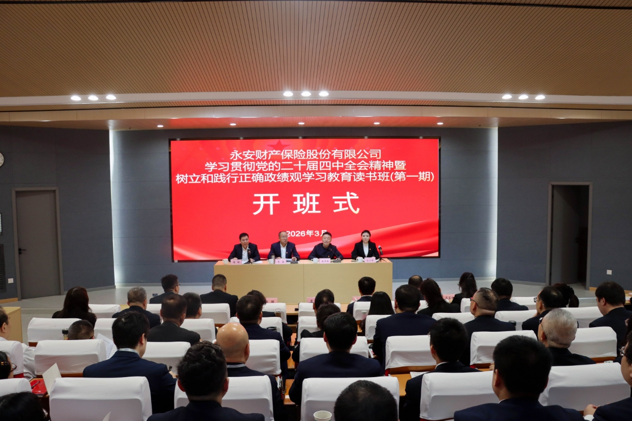 3月11日,由永安财产保险股份有限公司主办、我校承办的学习贯彻党的二十届四中全会精神暨树立和践行正确政绩观学习教育读书班(第一期)在我校桃园校区开班。永安财产保险股份有限公司党委书记、董事长常磊,我校党委副书记赵作纽出席开班式。开班式由永安财产保险股份有限公司党委副书记、董事、总经理周晖主持。来自永安财产保险股份有限公司总部各部门中层及以上领导干部、各分公司领导班子成员近80人参加。