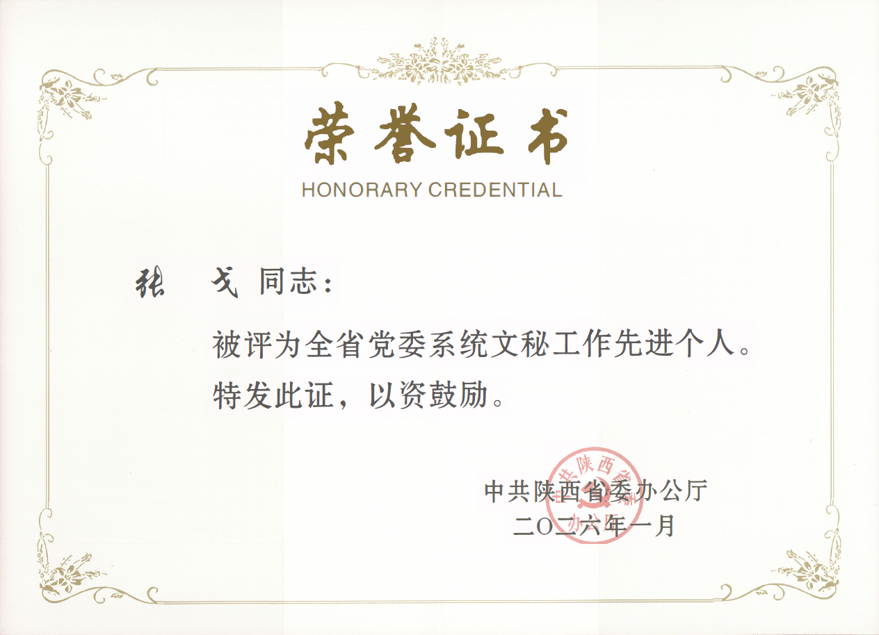 我校张戈同志荣获陕西省党委系统文秘工作先进个人