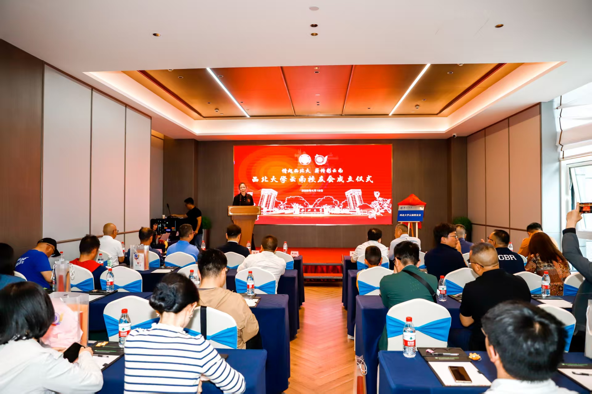 4月19日,我校云南校友会成立大会在云南省昆明市举行,云南校友代表、地方分会代表、兄弟高校云南校友会代表及云南陕西商会代表100余人参加大会。