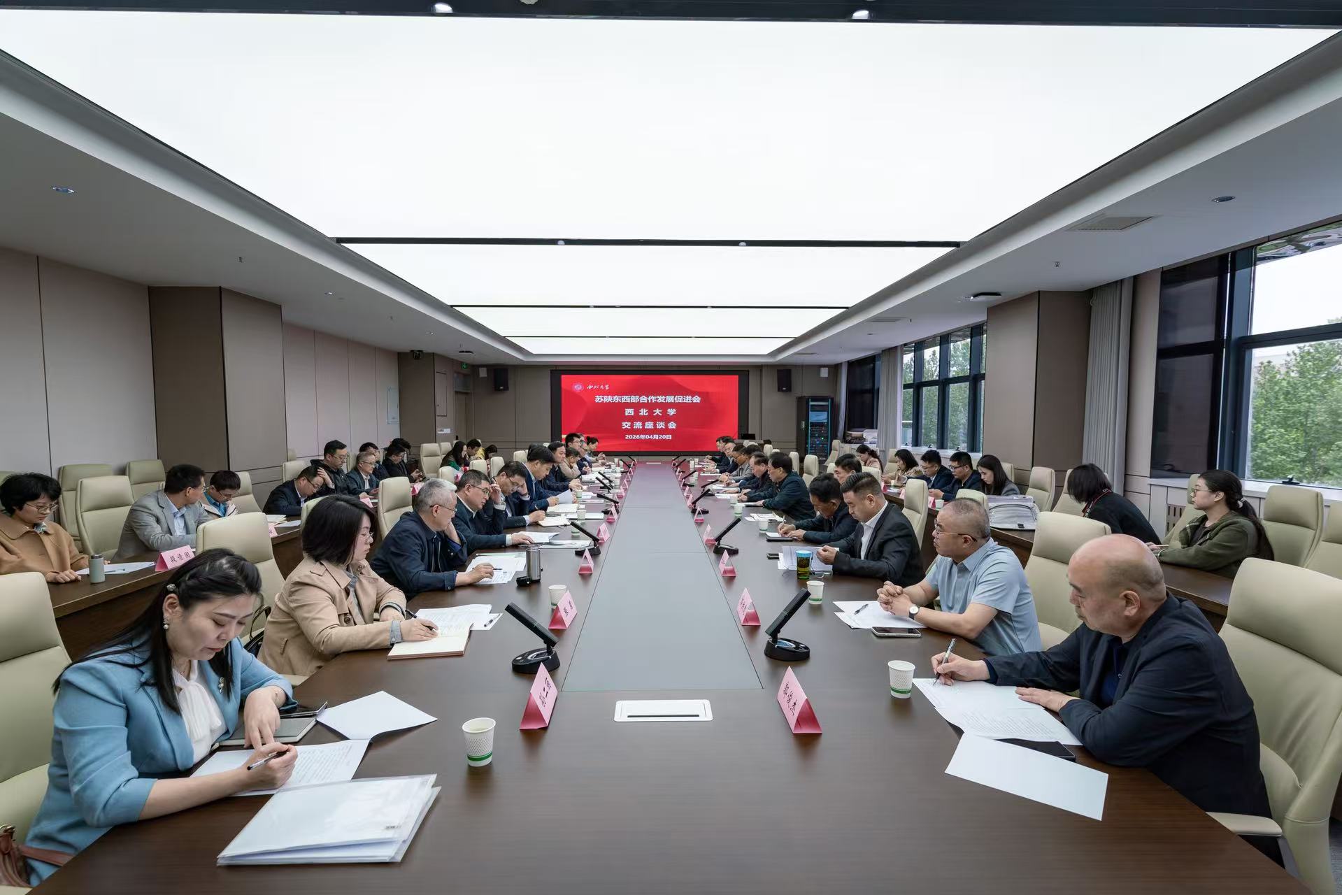 4月20日,苏陕东西部合作发展促进会党委书记、主席刘浩春一行来校调研交流,校党委书记蒋林出席座谈会,座谈会由校党委常委、副校长陈富林主持。