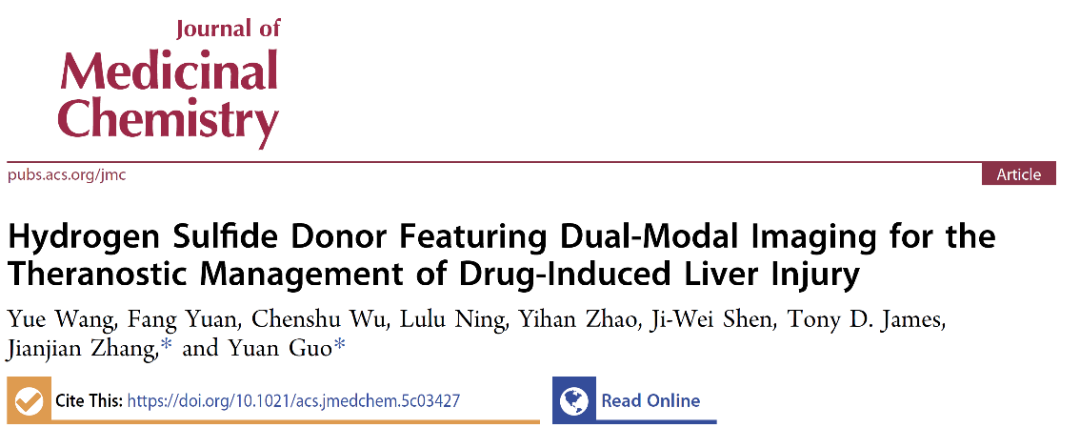 该成果以 “Hydrogen Sulfide Donor Featuring Dual-Modal Imaging for the Theranostic Management of Drug-Induced Liver Injury” 为题,发表于国际药学期刊Journal of Medicinal Chemistry。我校硕士研究生王悦为论文第一作者,郭媛教授和张健健教授为共同通讯作者。该研究率先开发出用于糖尿病DILI诊疗的双模态成像H₂S药物供体,为肝损伤的精准诊疗提供了 “酶激活-双模成像-气体治疗” 的研究范式。该工作得到了国家自然科学基金项目 (22277098, 22477101, 22037002)、陕西省基础科学(化学、生物学)研究院项目 (22JHQ070) 及教育部心肌缺血重点实验室项目 (KF202311) 等支持。