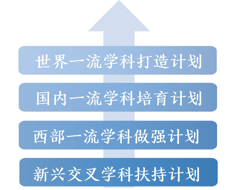 ——构建分层分类学科建设体系。根据学科发展现状,坚持非均衡、分层次的发展思路,按照“世界一流”“国内一流”“西部一流”“新兴交叉”四个层次构建学科建设体系,着力巩固基础学科的传统优势,挖掘应用学科的内在潜力,激发新兴交叉学科的发展活力,建设多学科交叉融合、协同发展的学科群,重点建设若干国际一流、国内领先的一流学科,形成学科纵向发展的梯队效应。