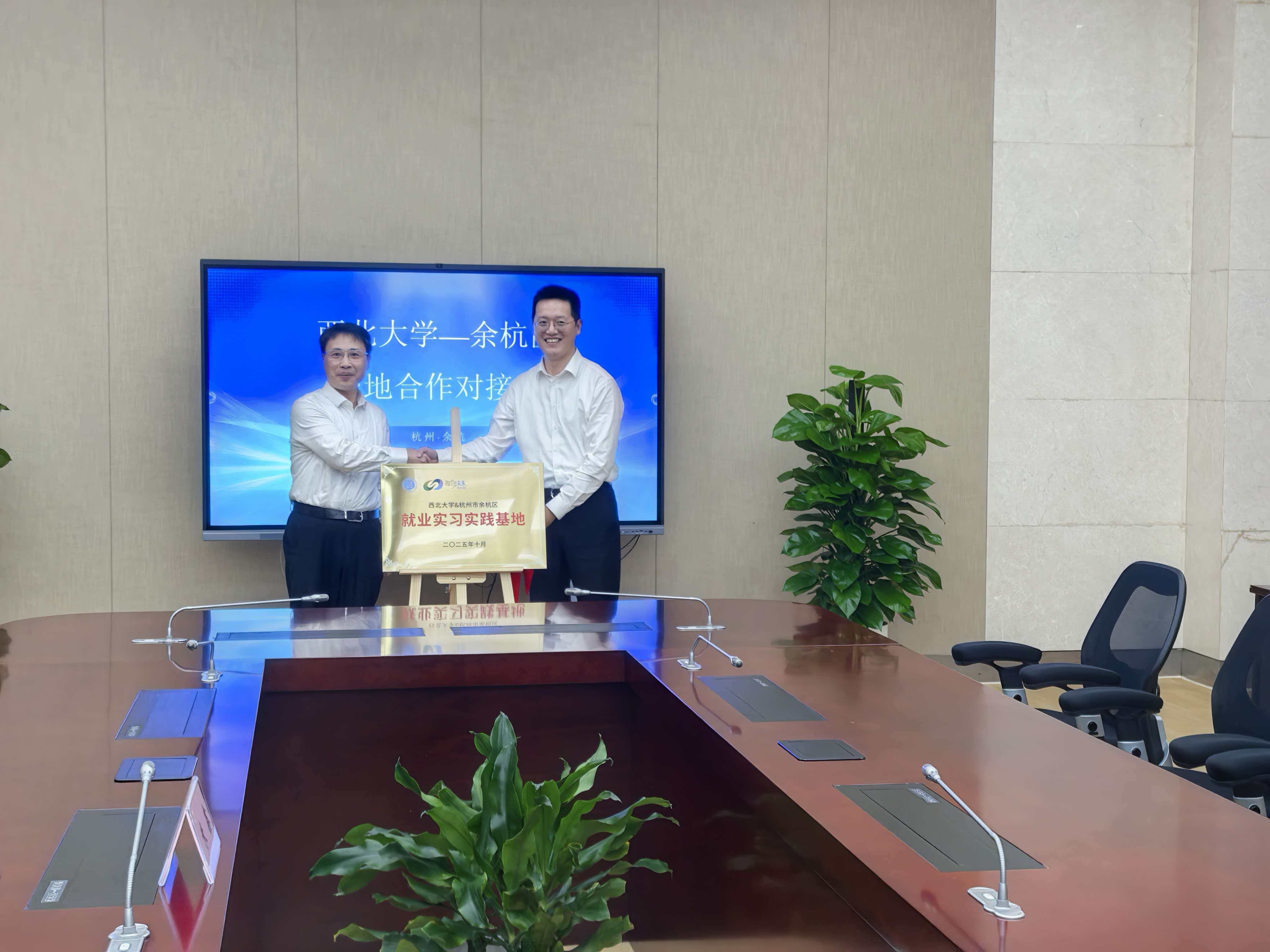 与杭州市余杭区人民政府座谈期间,双方为“西北大学&余杭区就业实习实践基地”揭牌,并围绕校地合作、人才培养、科技创新等进行深入交流。孙庆伟对余杭区长期以来在人才培养、毕业生招聘等领域给予学校的大力支持表示感谢,介绍了学校的建设发展情况。他指出,杭州是创新高地和青年创业的沃土,余杭区推动经济社会发展取得了突出的成效,此次学习交流对学校在教育科技人才一体改革背景下如何破局、乘势发展具有重要的启发意义。他表示,学校不仅要立足西部,也要面向东部沿海发达地区,发挥学科与人才优势,加强对接合作,互学互鉴、互利共赢。