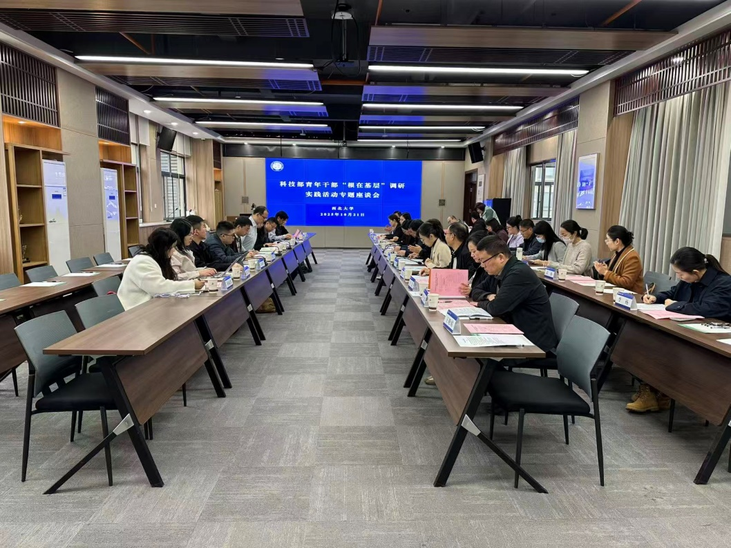 10月21日上午,科技部青年干部“根在基层”调研实践活动专题座谈会在我校长安校区召开。科技部合作司一处副处长(主持工作)乔健、科技部交流中心驻外服务与战略研究处副处长杨修率调研组一行10人来校交流。我校党委常委、副校长陈富林,科技处、高层次人才项目办公室、国际合作部及遗产学院负责人及代表参加座谈交流。座谈会由陕西省科技交流中心主任苗宏雄主持,陕西省科技厅对外合作与交流处副处长郑晴、陕西省科技交流中心副主任张思琪以及西安市高新区、西咸新区、在陕高校、科研院所及企业代表共30余人参会。