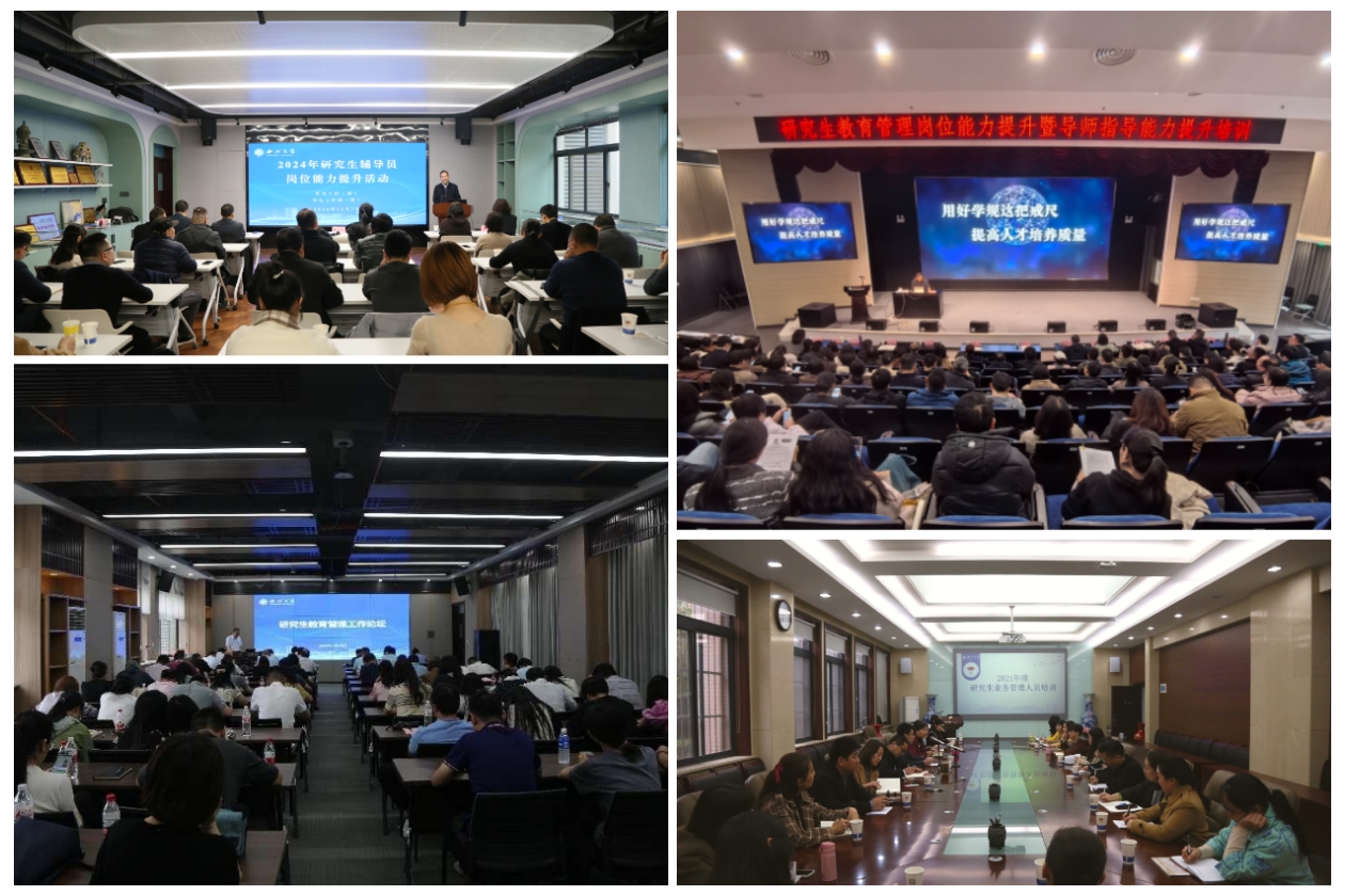 高质量的研究生教育离不开完善的保障体系。“十四五”期间,学校坚持质量导向与目标导向相结合,加强制度建设,共制定(修订)研究生教育规章制度42项,构建了全流程、多层次、多维度的研究生人才培养质量保障体系。坚持“破五唯”导向,改革创新研究生成果评价认定方式,将发明专利、研究报告、科研成果转让、学科竞赛及创新创业获奖等纳入学位授予评价范围。建立校院两级研究生教育质量督导体系,遴选109位督导人员对研究生培养关键环节开展常态化监督。先后加入中国研究生院院长联席会、中国研究生导师发展共同体、全国高校研究生党建和思想政治工作联盟等全国性研究生教育组织,加强交流互动,借鉴先进经验做法,为研究生人才培养注入活力。每年以专题调研、工作论坛等形式组织管理干部、研究生秘书、辅导员等研究生战线工作人员参加培训,着力提升管理服务水平,助力研究生成长成才。