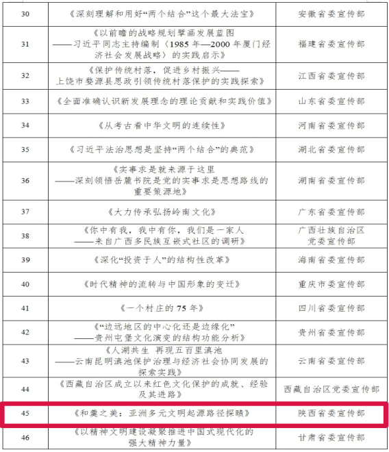 近日,中央宣传部理论局和广电总局宣传司发布了2025年度全国优秀理论宣传作品扶持计划拟入选名单。我校区域国别学院谢志斌副教授的理论文章《和羹之美:亚洲多源文明起源路径探赜》成功入选,凸显了我校教师在建设文化强国、讲好中国故事、促进学术传播和大众传播方面的担当作为。