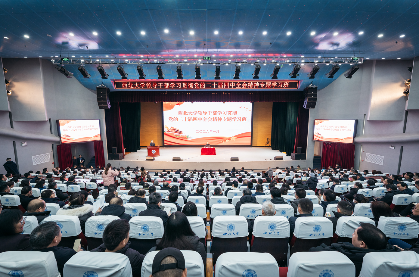 1月22日至1月27日,我校领导干部学习贯彻党的二十届四中全会精神专题学习班在长安校区举行。校党委副书记、校长孙庆伟主持开班式,校党委书记蒋林书记作专题学习班结业总结讲话,校党委常委、统战部部长董国强主持结业式,全体在校校领导、处级干部参加了本次培训。