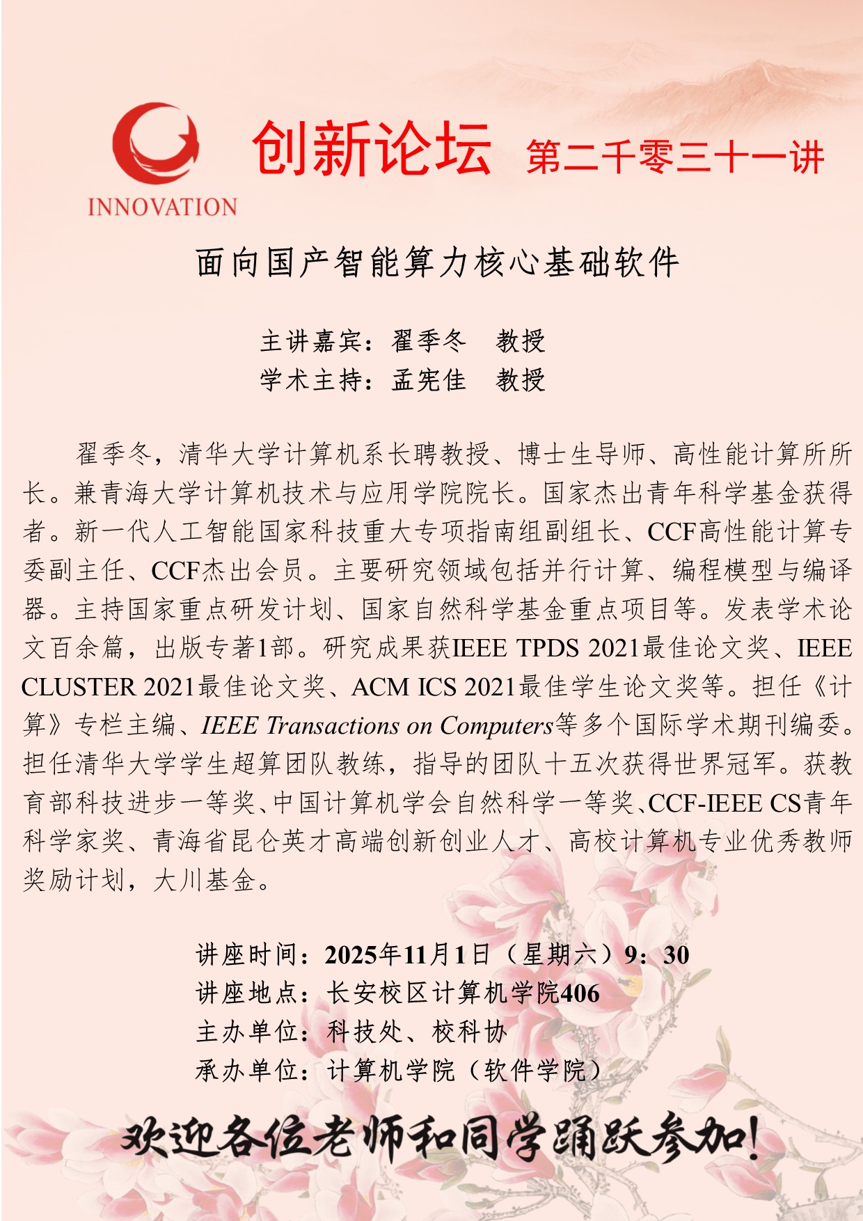 西北大学创新论坛第二千零三十一讲:面向国产智能算力核心基础软件