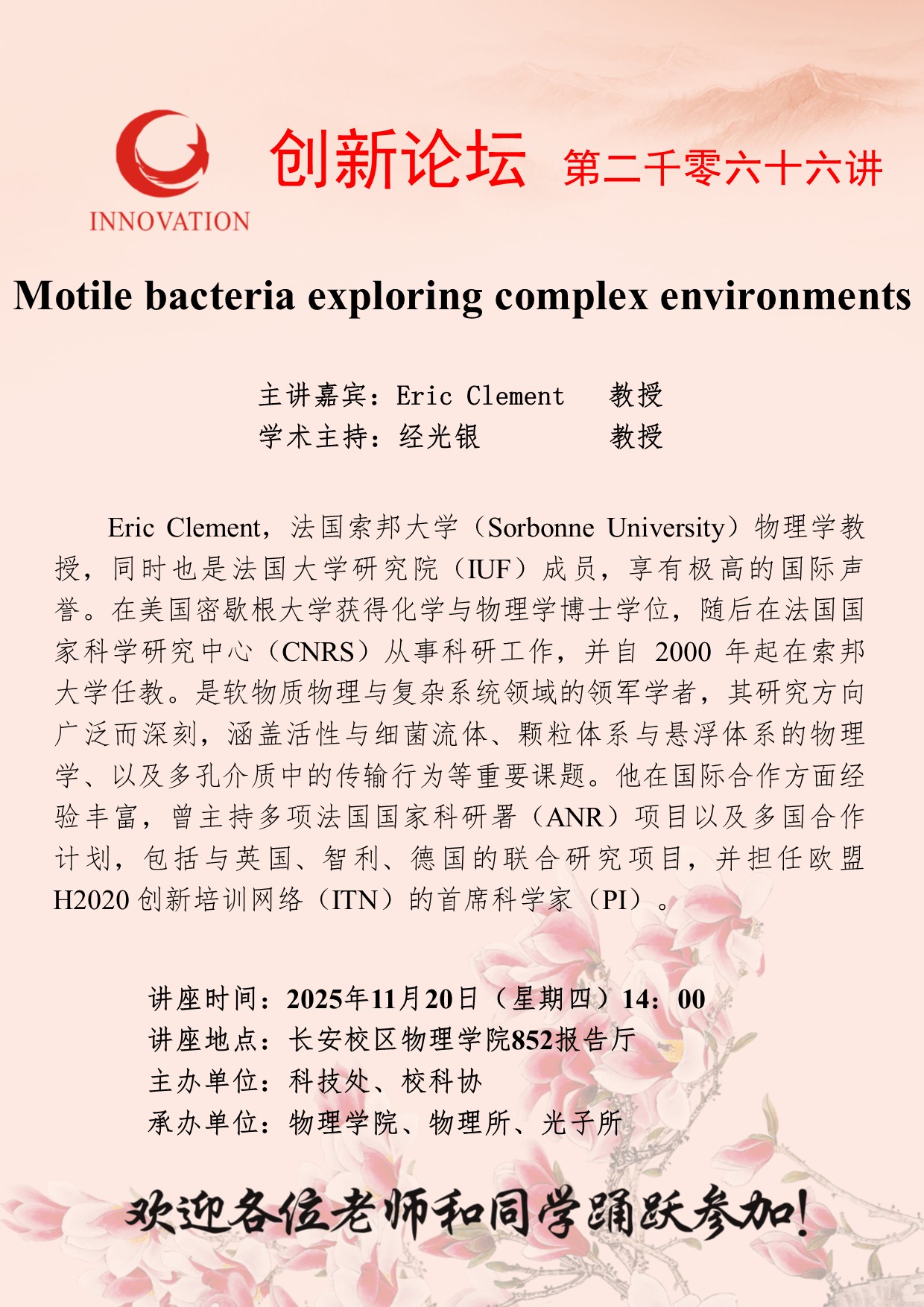 西北大学创新论坛第二千零六十六讲:Motile bacteria exploring complex environments