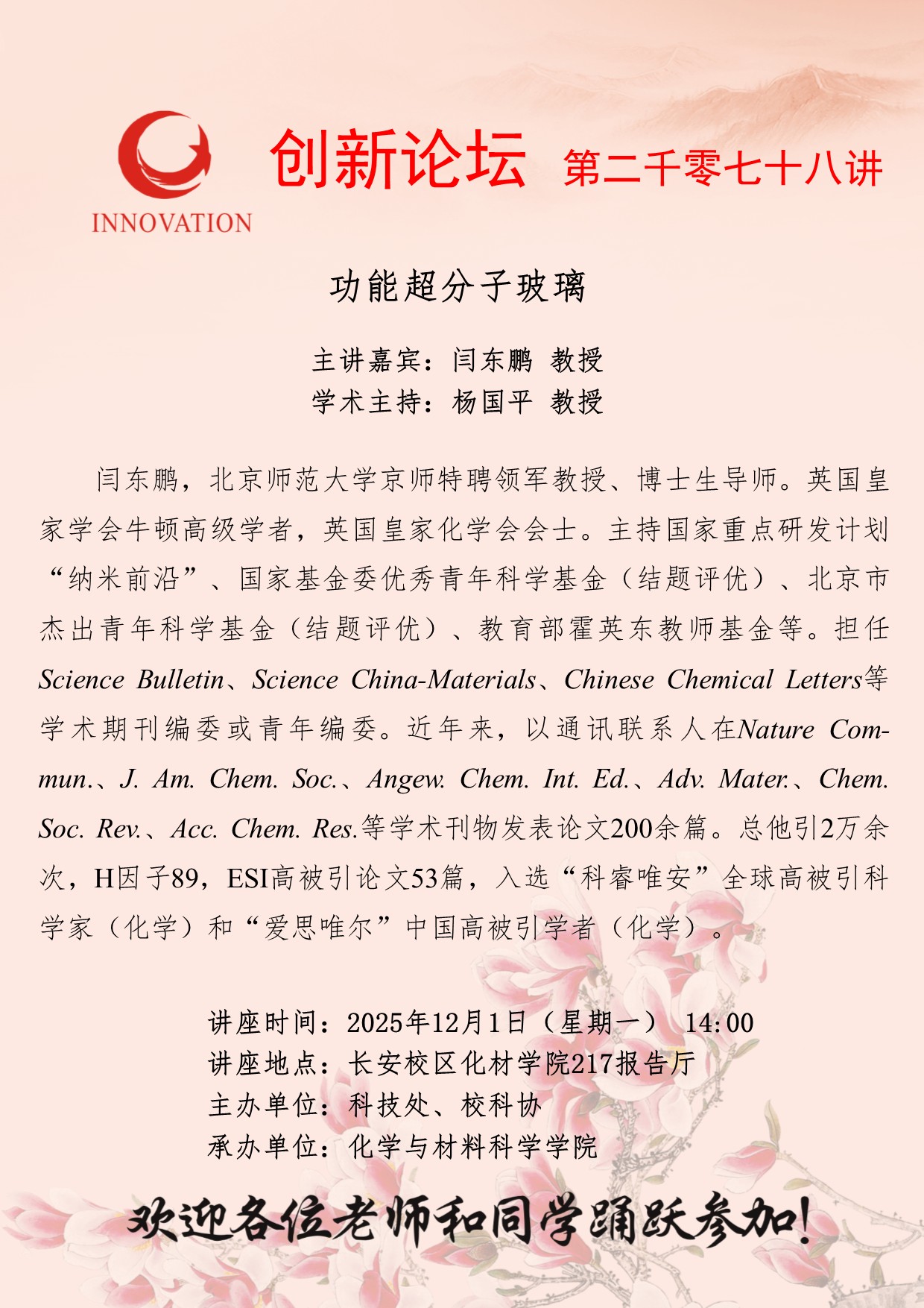 长安校区化材学院217报告厅
