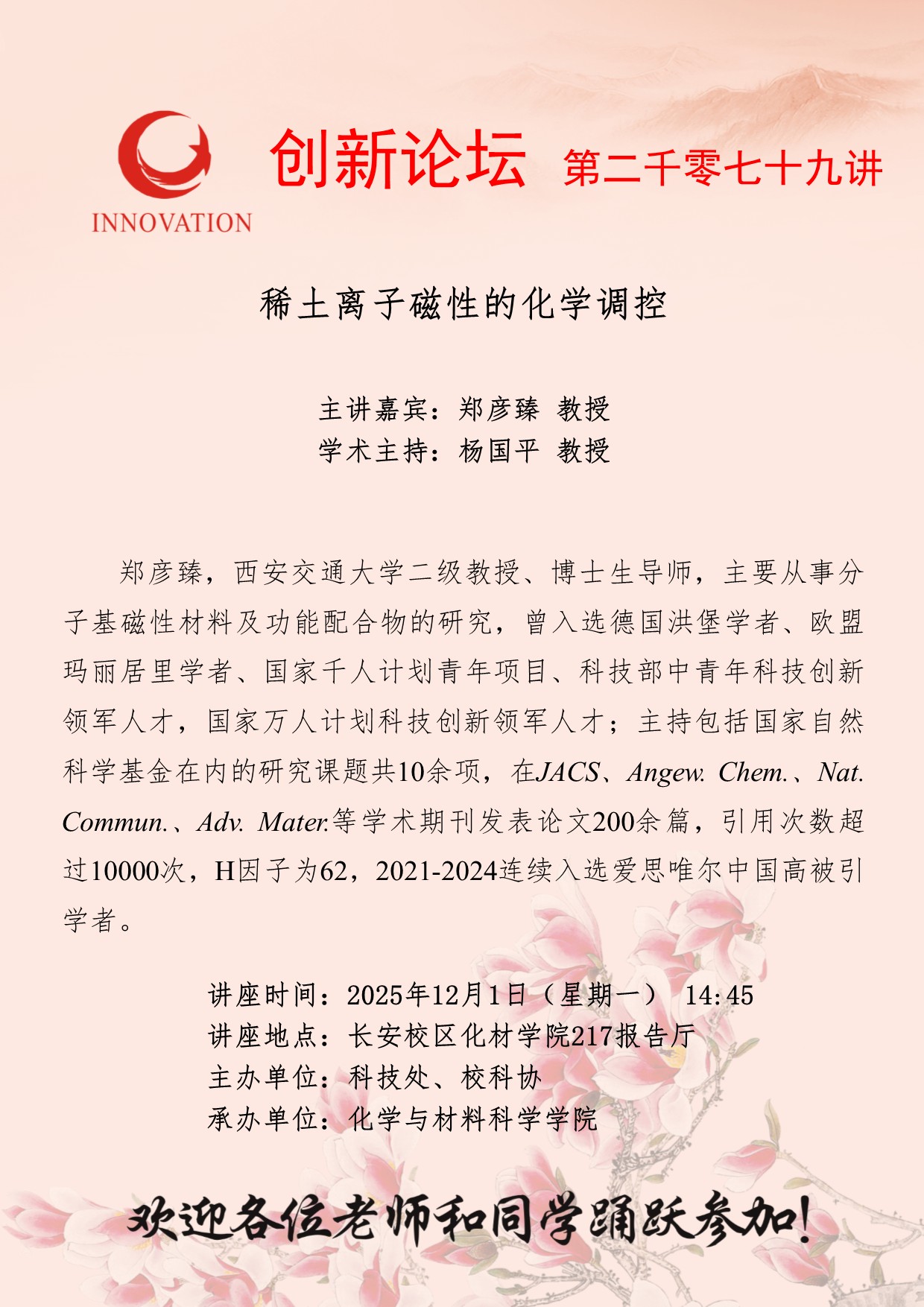 西北大学创新论坛第二千零七十九讲:稀土离子磁性的化学调控