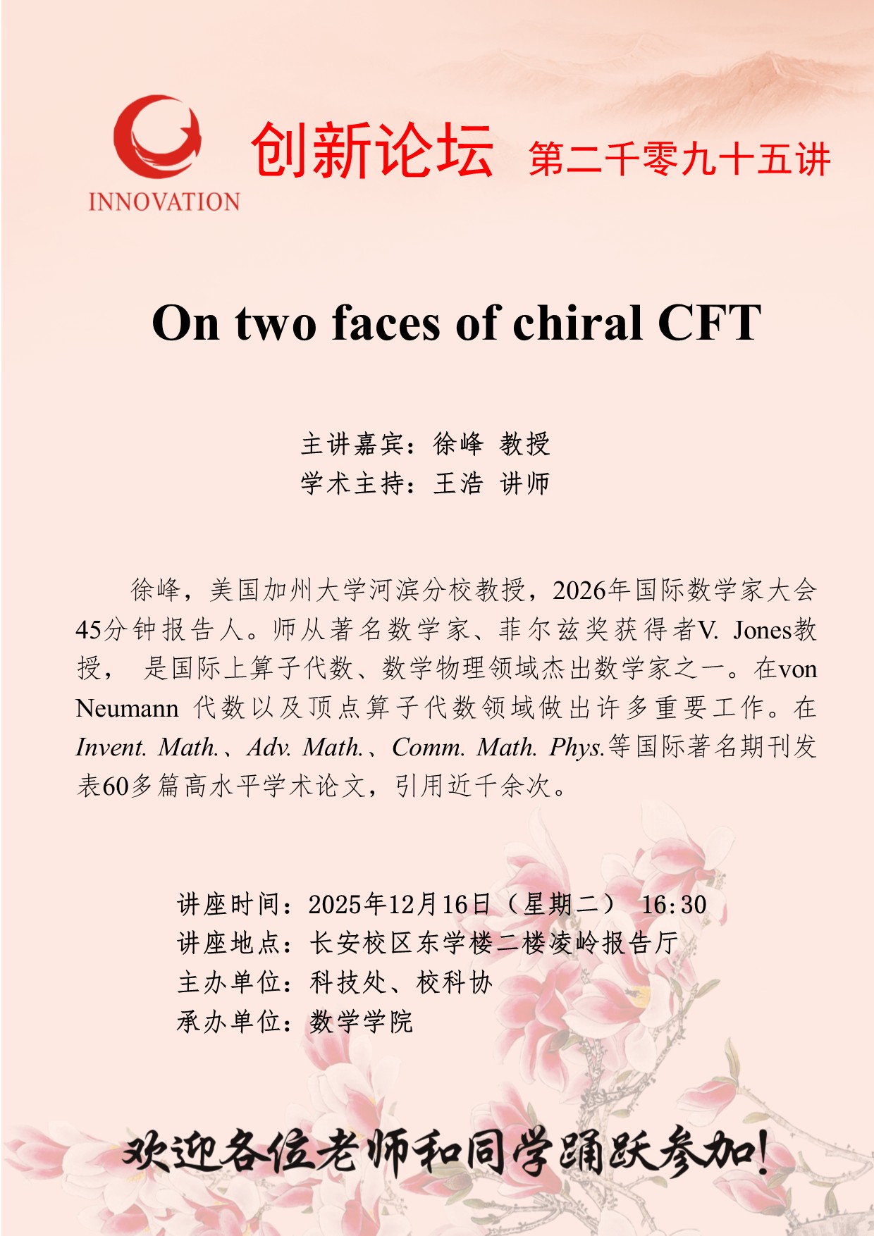 西北大学创新论坛第二千零九十五讲:On two faces of chiral CFT