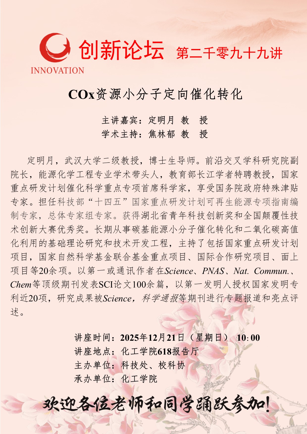 西北大学创新论坛第二千零九十九讲:COx资源小分子定向催化转化