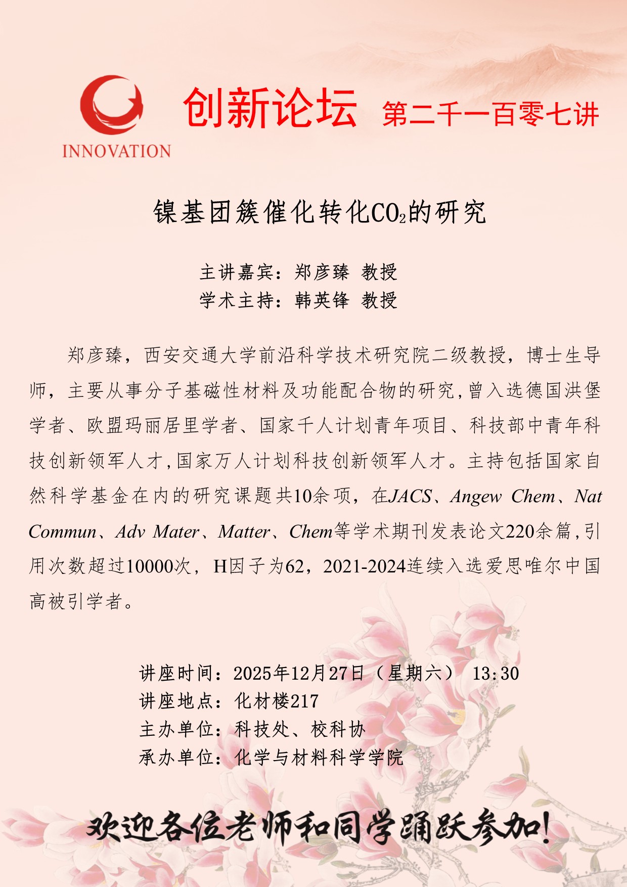 西北大学创新论坛第二千一百零八讲:晶态孔材料组装用于多组分气体分离