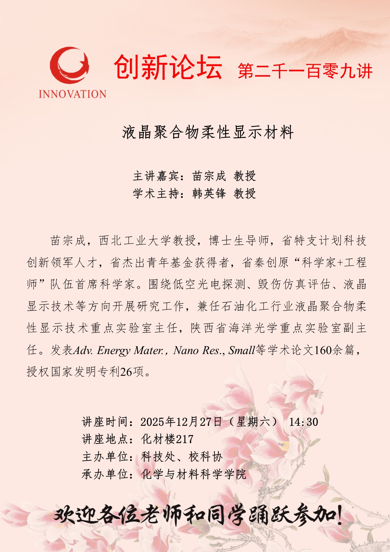 西北大学创新论坛第二千一百零九讲:液晶聚合物柔性显示材料