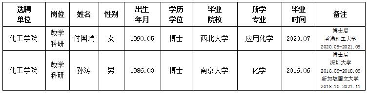 经用人单位推荐,人力资源部审查,学校教学督导及院系相关专家考核,我校拟确定下列人员来校工作。本着公平、公正、公开的原则,现将本次拟选聘人员基本情况公示如下: