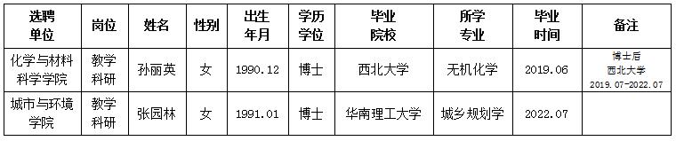 经用人单位推荐,人力资源部审查,学校教学督导及院系相关专家考核,我校拟确定下列人员来校工作。本着公平、公正、公开的原则,现将本次拟选聘人员基本情况公示如下: