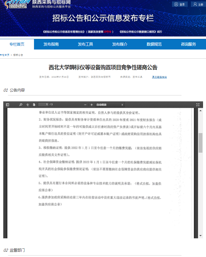 西北大学酶标仪等设备购置项目竞争性磋商公告 作者: 编辑:采购与招标办公室 时间:2022-07-26 原公告链接:http://bulletin.sntba.com/biddingBulletin/2022-07-26/452921.html