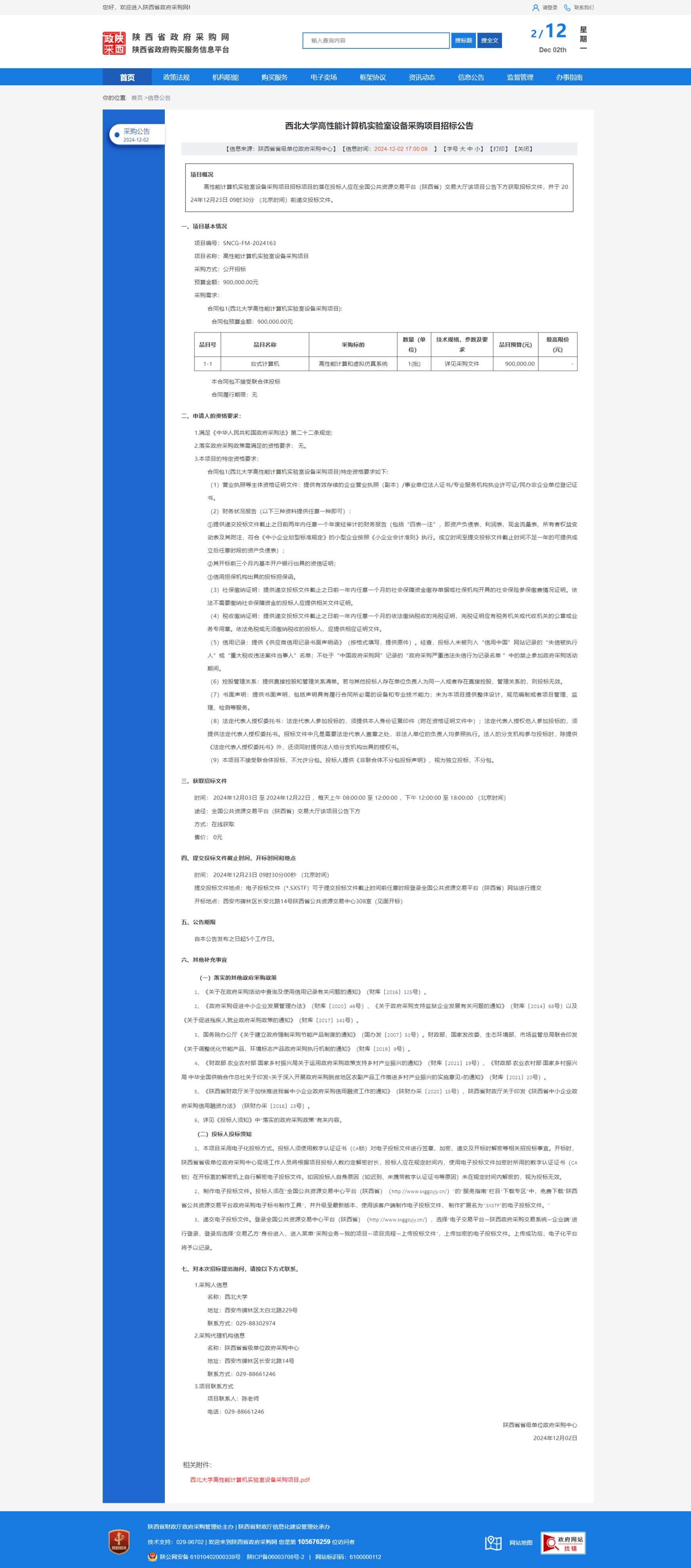 原公告链接:https://www.ccgp-shaanxi.gov.cn/freecms/site/shaanxi/ggxx/info/2024/8a69c95d921859f0019385fa52aa33e9.html?noticeType=001011&noticeId=6ee78a15-b08d-11ef-8063-08c0eb20c666