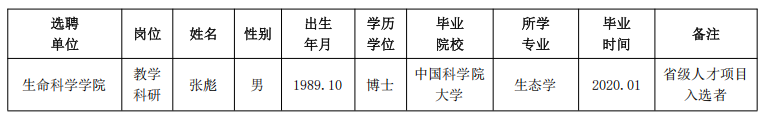 经资格审查,用人单位考查,学校审批,我校拟确定下列人员来校工作,聘任方式为事业编特别选聘。本着公平、公正、公开的原则,现将本次拟选聘人员基本情况公示如下: