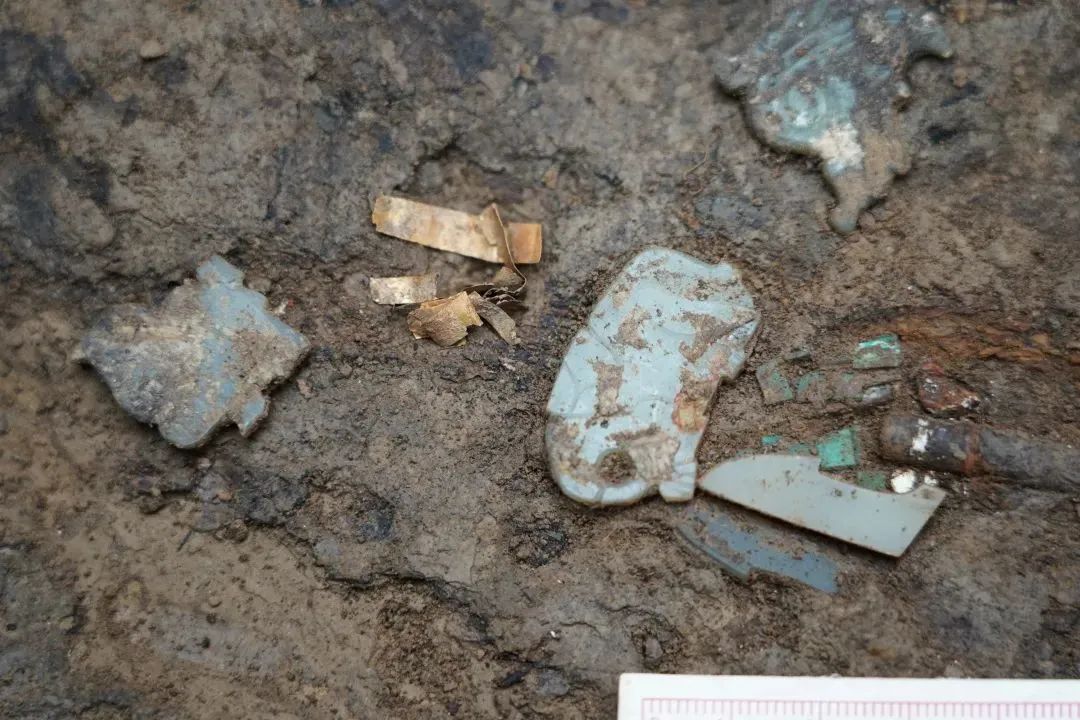 M98、M99亦为甲字形大墓,M98与M90墓道相接,墓室棺椁扰动严重,出土有陶器、玉器、铜器、金箔片及蚌饰,墓葬年代为西周中期。