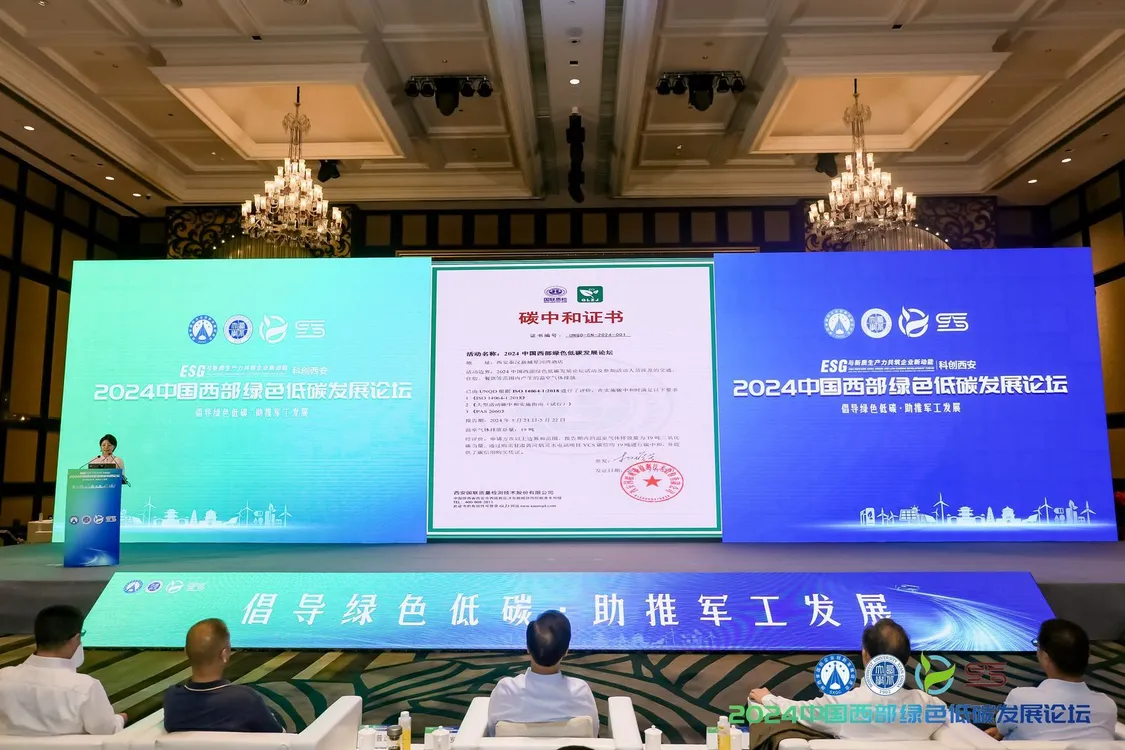 为2024中国西部绿色低碳发展论坛颁发碳中和证书