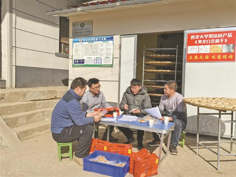品质是根基,品牌是翅膀。村民乔龙是当地公认的黑龙口豆腐干制作行家。工作队协助乔龙完成了豆腐干商标注册,升级了产品包装,打通了线上销售渠道。西北大学教师、驻村第一书记曹海滨拍摄了展现豆腐传统制作工艺的短视频,并通过个人视频号“木本水源—西大铁炉”进行宣传推广。短短两个月,乔龙的豆腐干线上销售额已占销售总额的1/3以上。