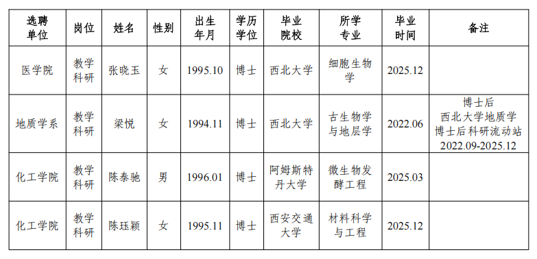注:1.本人须在公示期满后1个月内签订就业协议(开具接收函),并提前准备我校师资博士后入站材料(材料清单详见:https://rsc.nwu.edu.cn/bshgz/jczdjcl.htm);