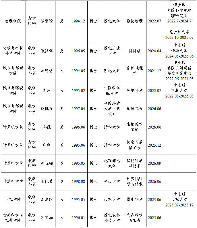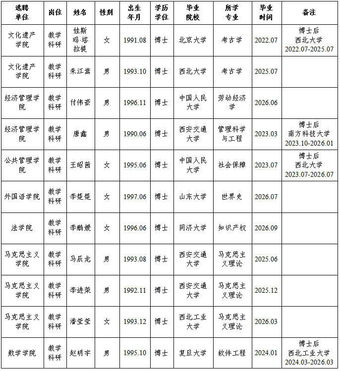 经资格审查,用人单位考查,学校专家评审会审议,我校拟确定下列人员来校工作,聘任方式为事业编正常选聘。本着公平、公正、公开的原则,现将本次拟选聘人员基本情况公示如下: