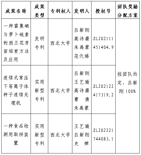 按照《西北大学促进科技成果转化实施办法》(西大科〔20195号)相关规定,拟对我校食品科学与工程学院吕新刚副教授作为成果负责人的3项专利权实施转化,现将相关信息公示如下:
