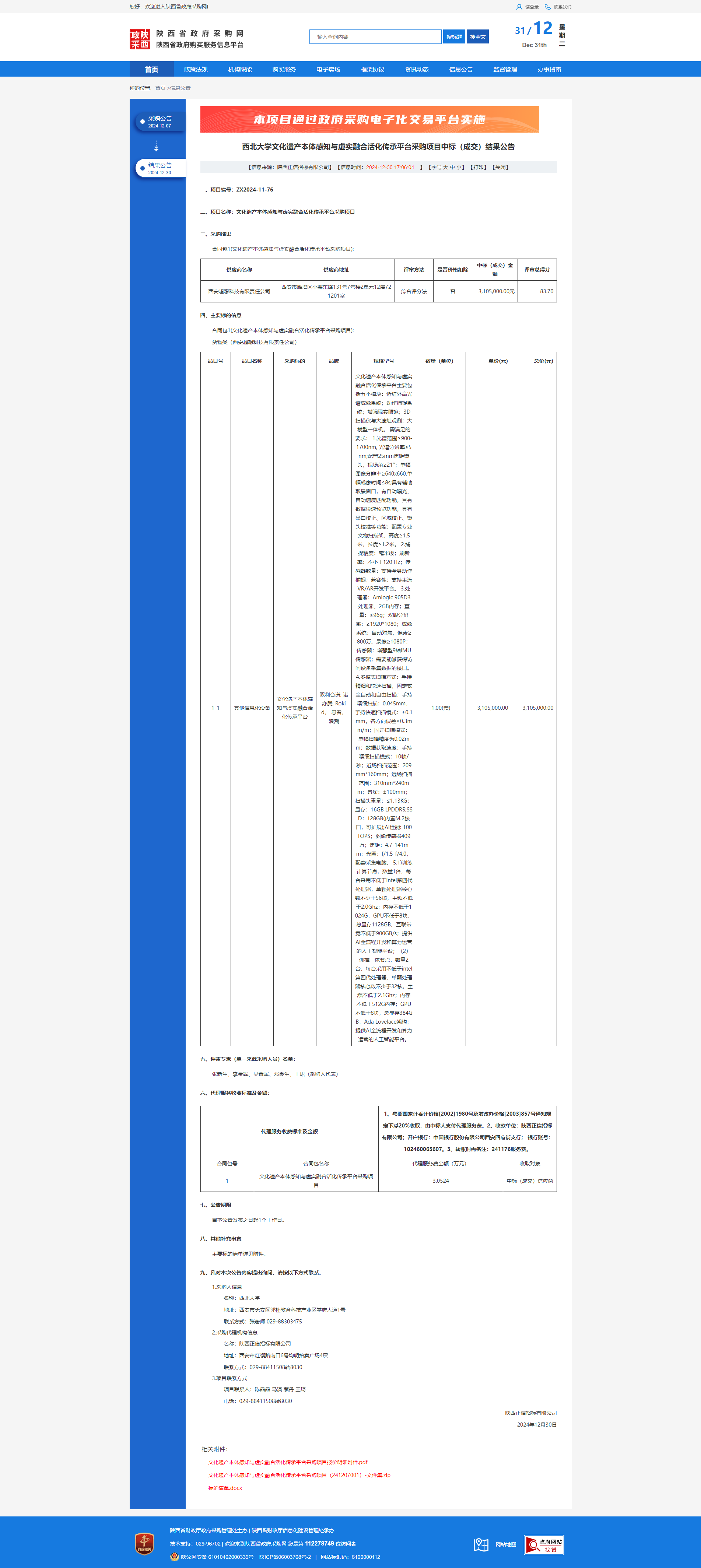 西北大学文化遗产本体感知与虚实融合活化传承平台采购项目中标(成交)结果公告