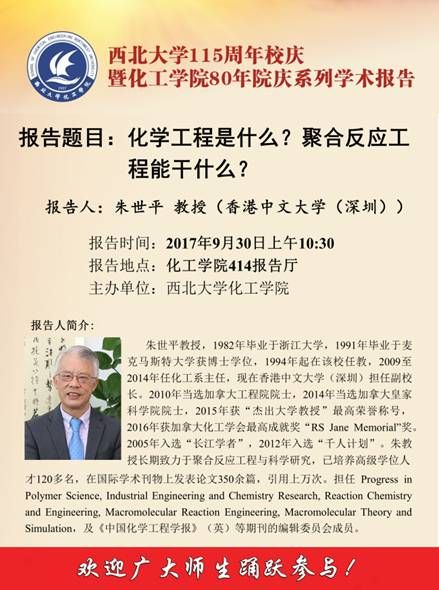 西北大学115周年校庆暨化工学院80年院庆系列学术报告