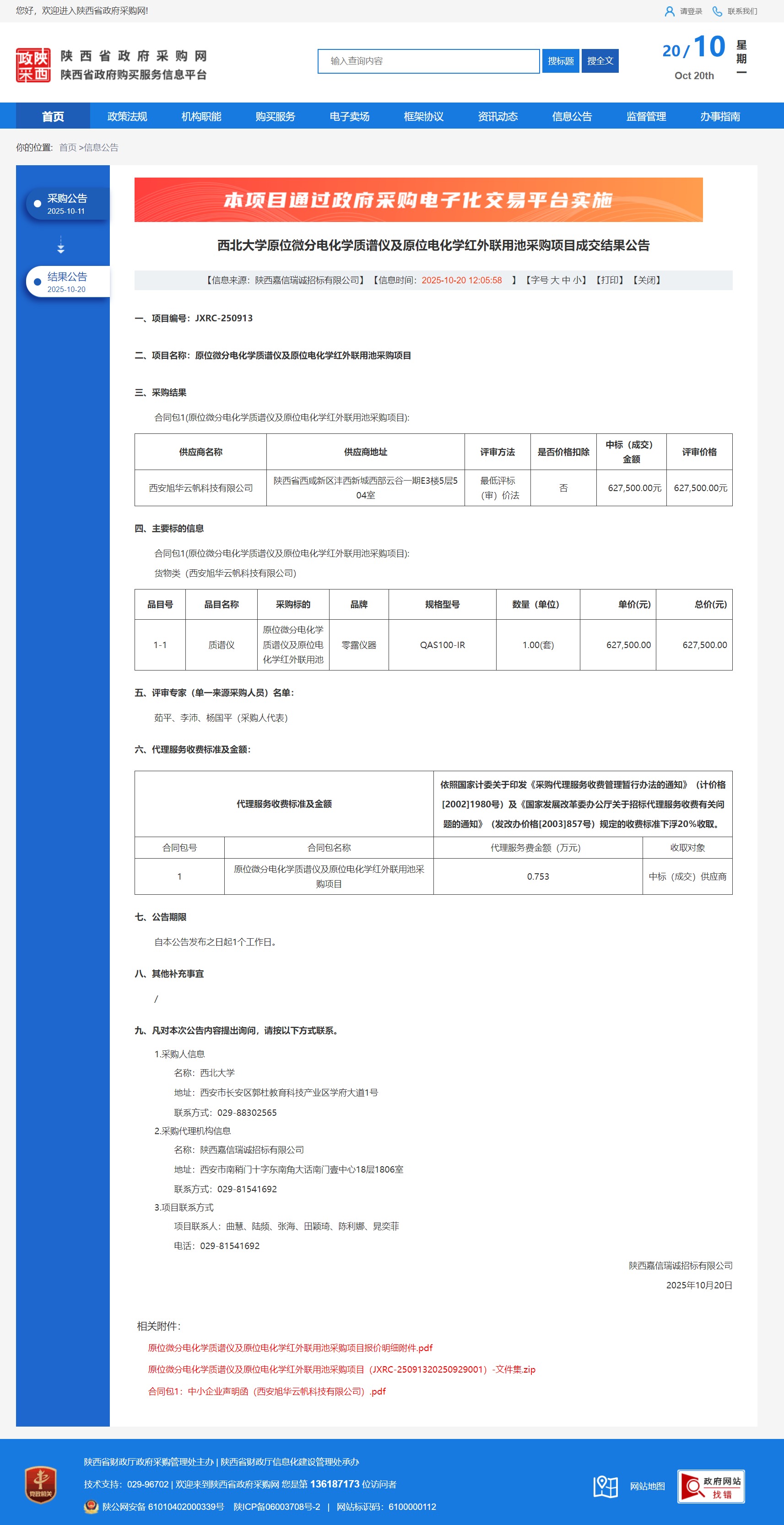 西北大学原位微分电化学质谱仪及原位电化学红外联用池采购项目成交结果公告