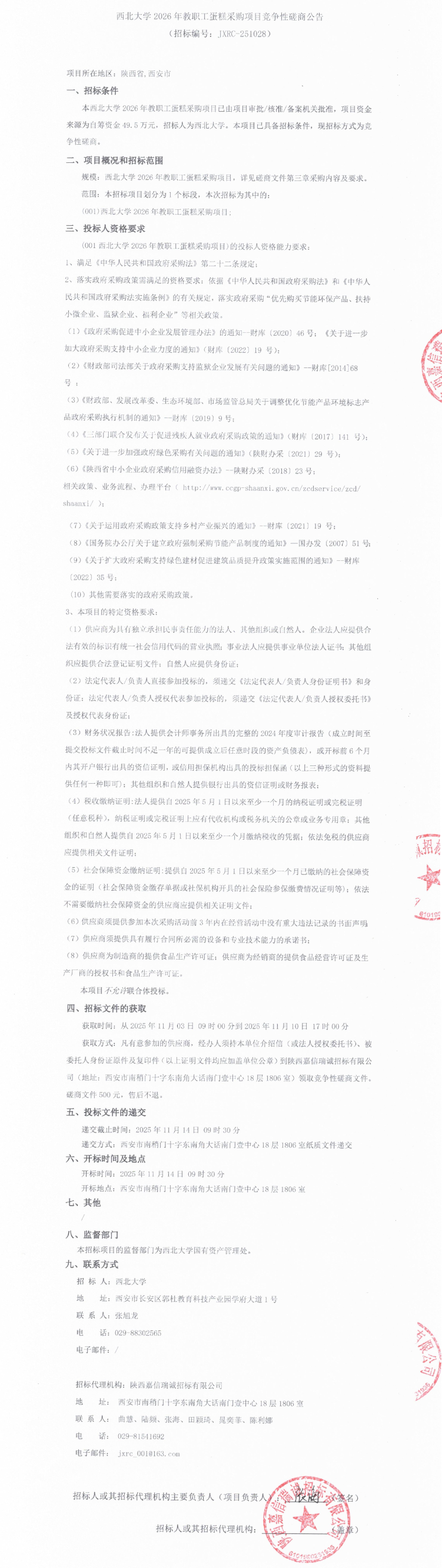 西北大学2026年教职工蛋糕采购项目竞争性磋商公告