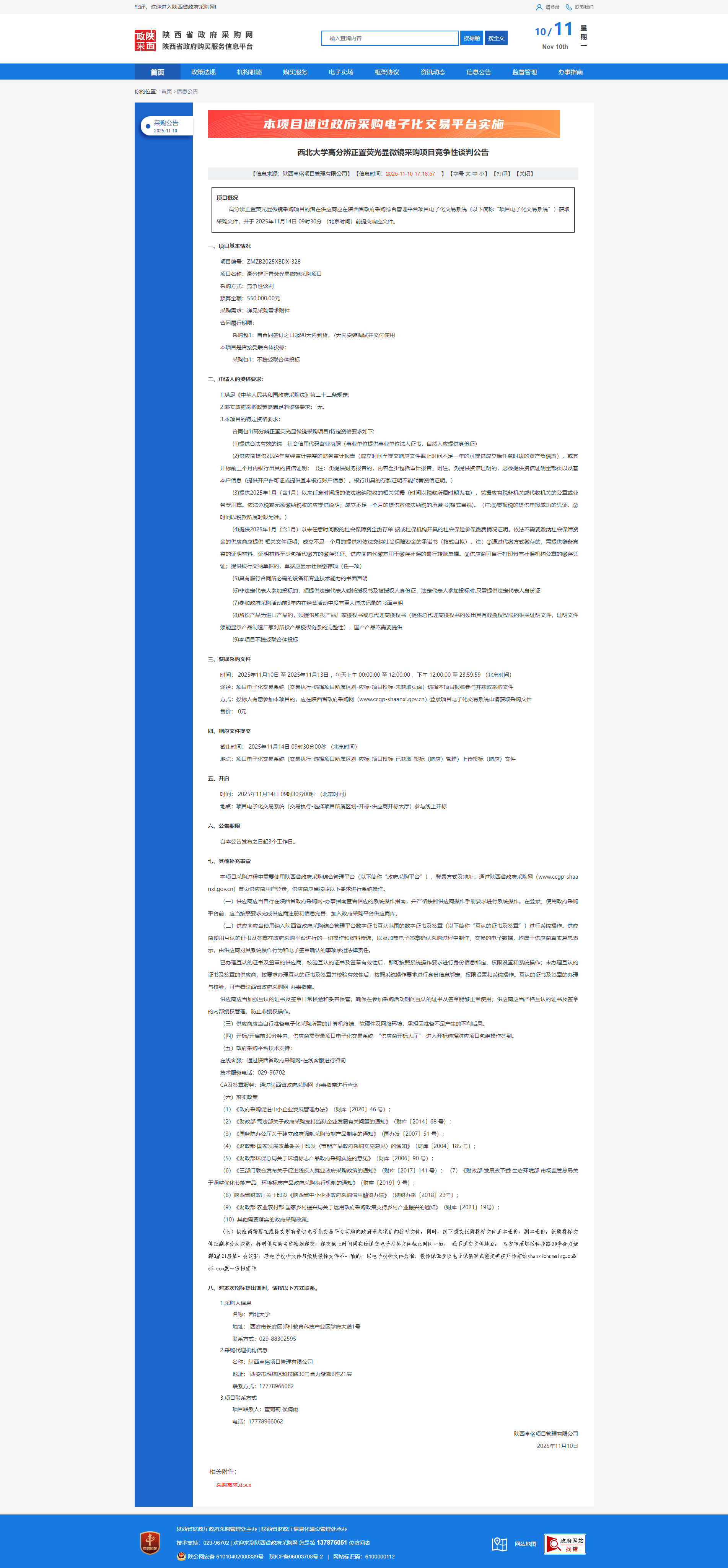 西北大学高分辨正置荧光显微镜采购项目竞争性谈判公告